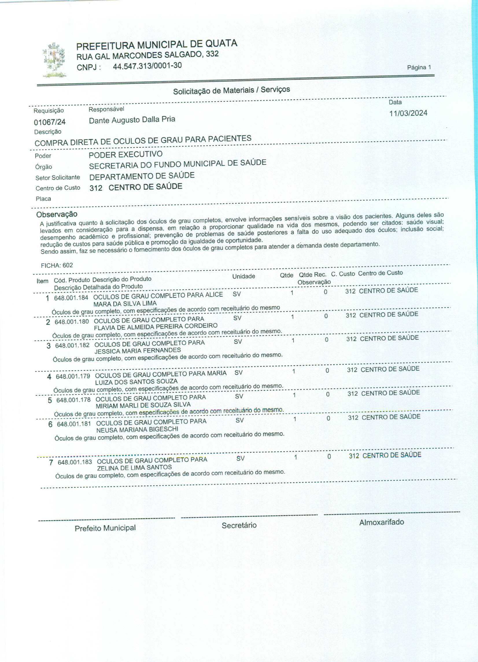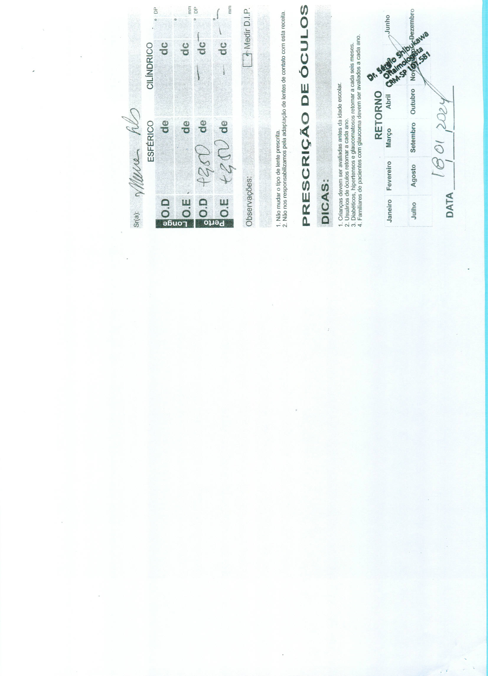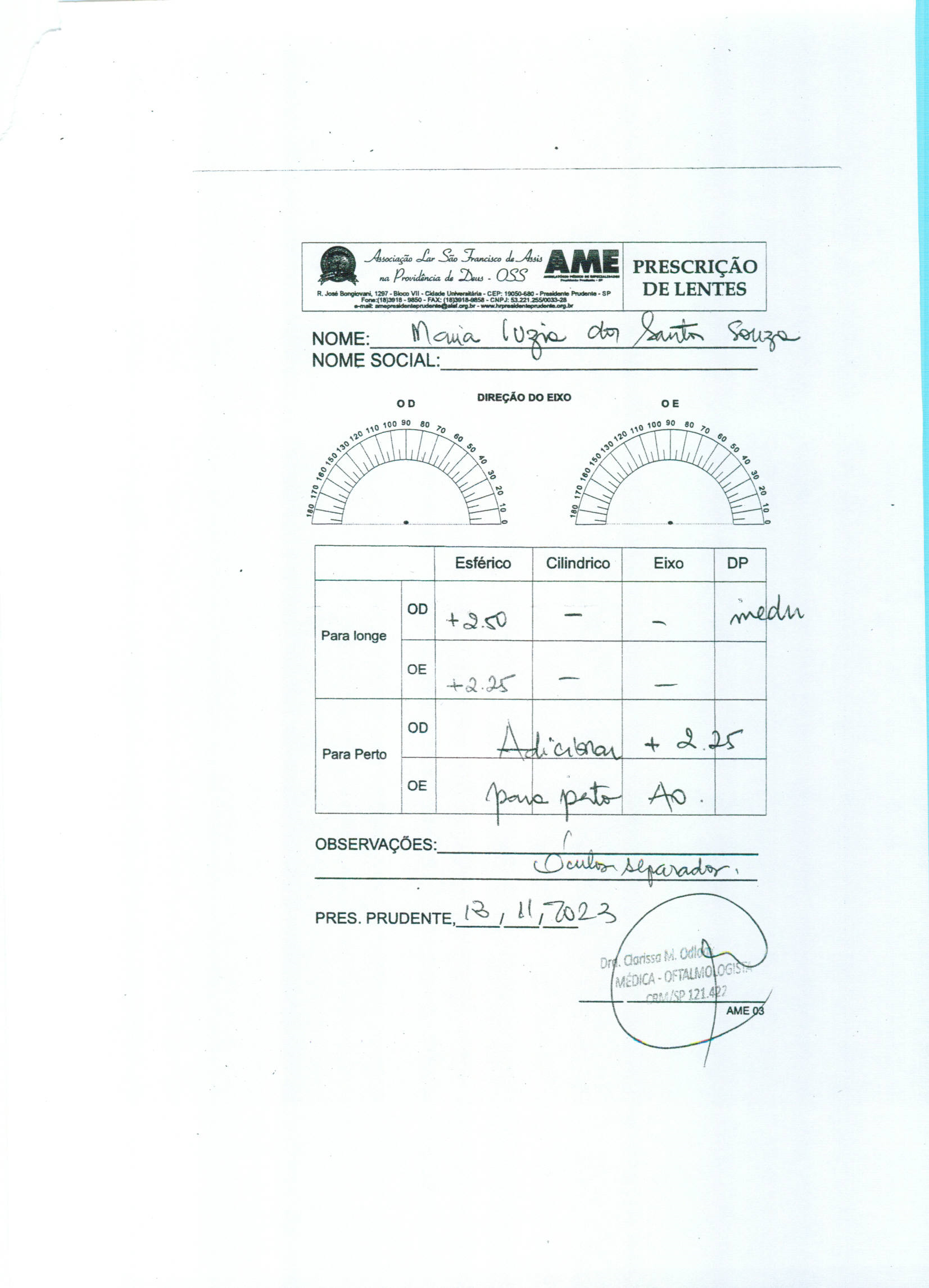Compra nº 1067 - óculos de grau para pacientes