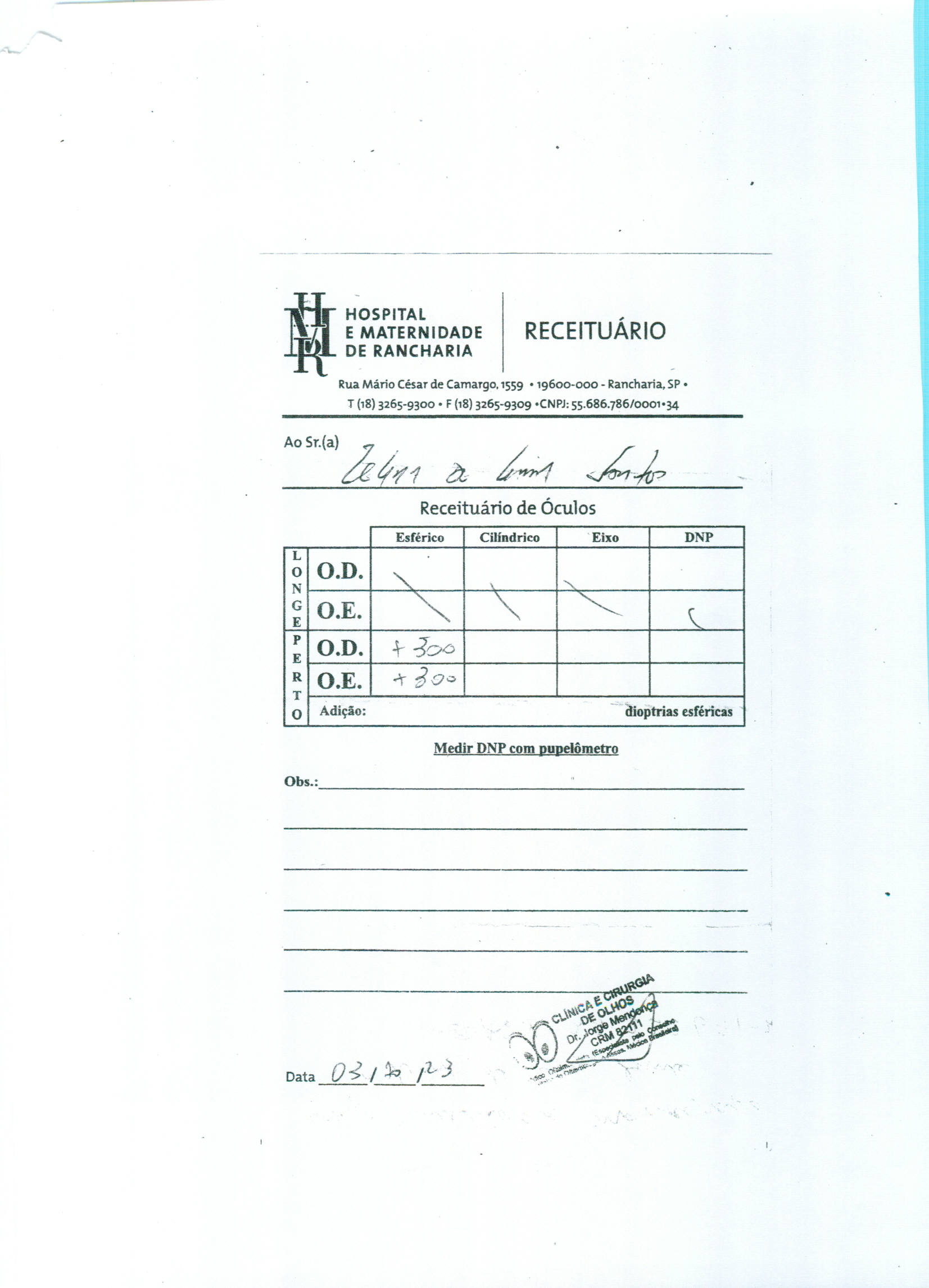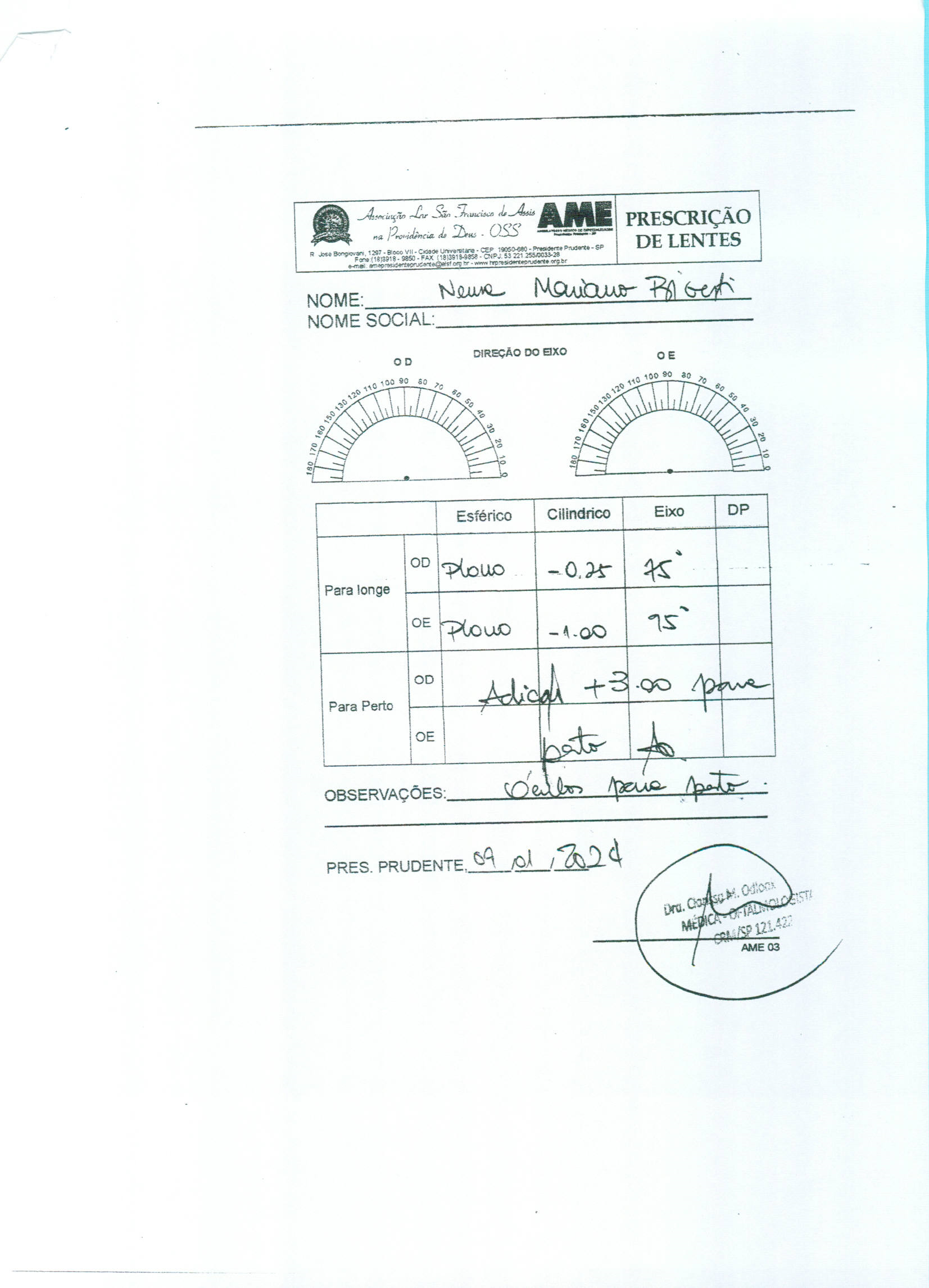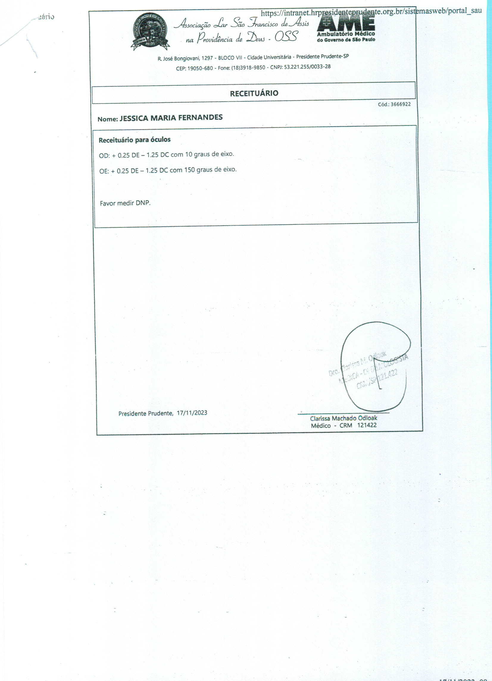 Compra nº 1067 - óculos de grau para pacientes