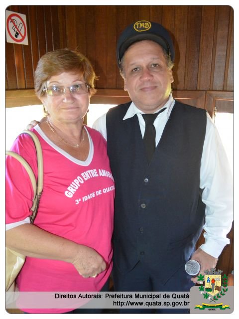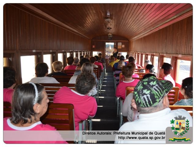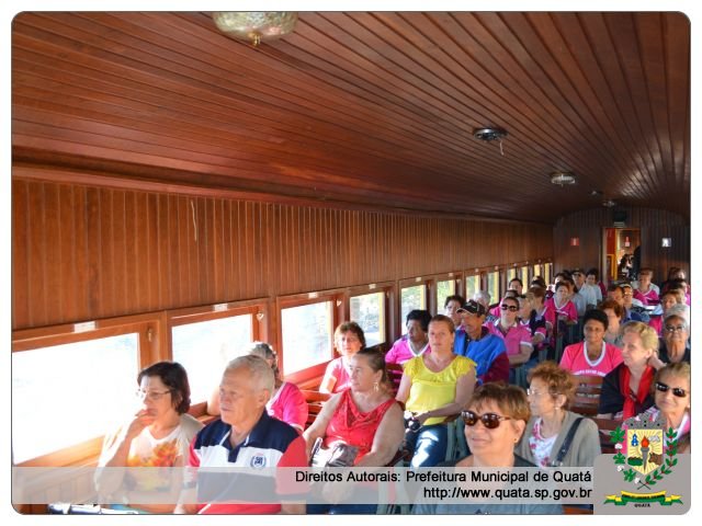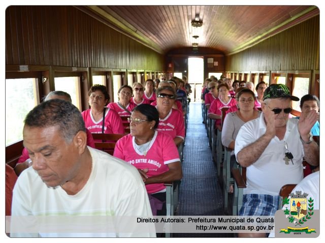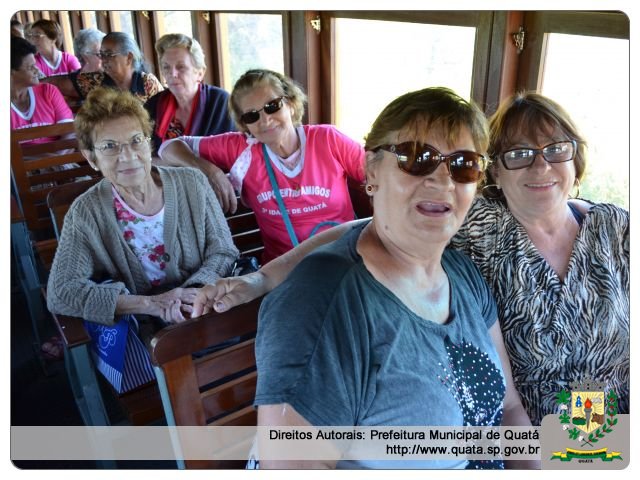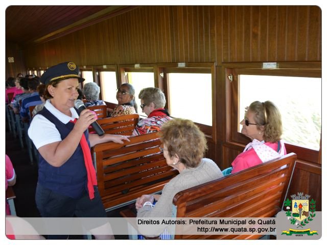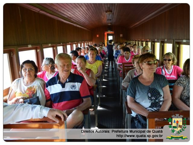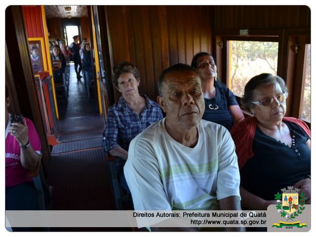 Piuiiiiii....Tic Tac Tic Tac! Foi nesse balanço e em ritmo saudosista, que o Grupo com 46 pessoas da Terceira Idade de Quatá embarcou a bordo da Maria Fumaça “Dona Lina", na manhã de 06 de dezembro, em uma viagem encantadora e nostálgica percorrida pelos trilhos da Estação de Paraguaçu Paulista. A viagem foi proporcionada pela Prefeitura Municipal de Quatá em parceria com a Secretaria de Promoção Social, em comemoração a Semana do Idoso.