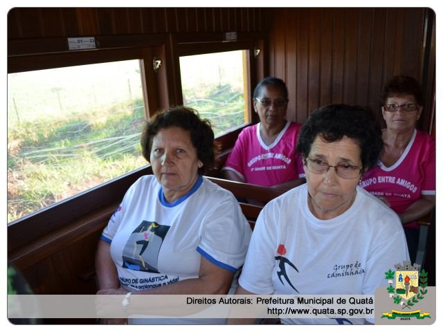 Durante o passeio de 24 quilômetros (ida e volta) no Trem Turístico e Cultural “Moita Bonita”, o qual teve a duração de cerca de 40 minutos, os idosos - que estavam acompanhados pela Assistente Social Fernanda Maria dos Santos; o Professor Ronaldo Sena, a Assessora de imprensa Andréia Serrano Fagundes e da Presidente da Terceira Idade Ivete Favoreto - se deslumbraram com a paisagem e receberam informações sobre o trajeto, bem como sobre a importância da ferrovia do desenvolvimento de toda a região. "Fico muito feliz em poder proporcionar para a Terceira Idade momentos de descontração e alegria", comenta a prefeita Luciana Guimarães Alves Casaca, que por motivo de saúde não pôde acompanhar o grupo.