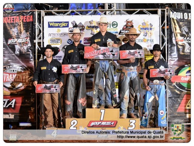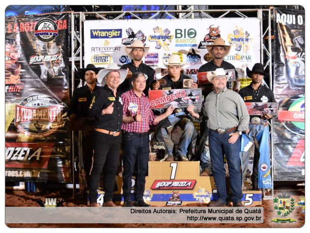 O atual campeão nacional da Ekip Rozeta, Fábio Bráz também subiu ao pódio na quarta posição, seguido de Daniel Batista de Lima, que ficou em quinto. Enrique Moraes destaca que a final de Quatá foi uma das melhores deste ano, reunindo uma verdadeira seleção de touros, que levaram a melhor vencendo seis dos 10 competidores.