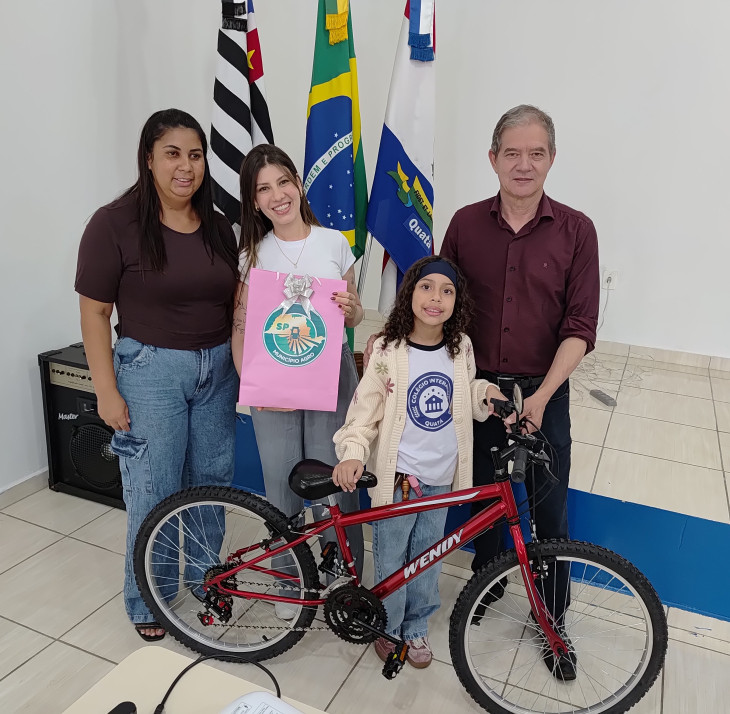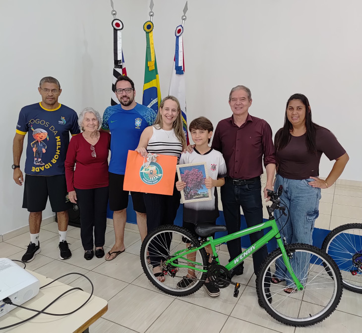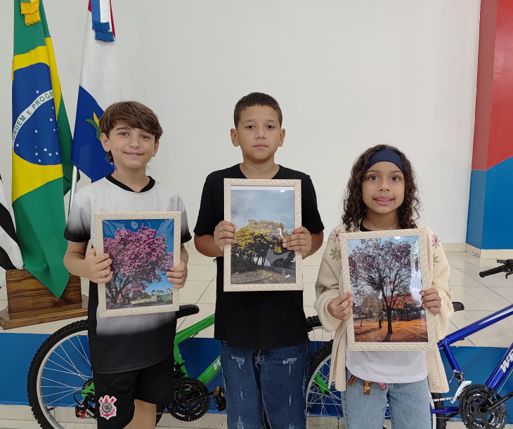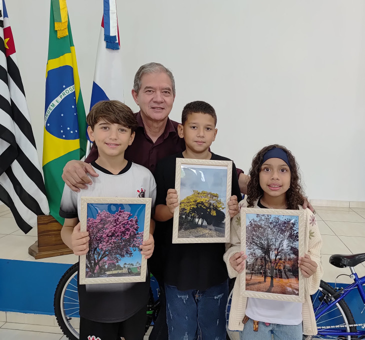 13/10/2025 11:18A Prefeitura de Quatá, por meio da Secretaria de Agricultura e Meio Ambiente, realizou no dia 10 de outubro a entrega da premiação do Concurso de Fotos do Dia da Árvore - "Minha Cidade que Ninguém Vê". Em 1º lugar foi premiado o aluno Fagner Terçarioli, do 4º ano A, da Escola Ângela Maria Pelline Garcia - "Gi"; em 2º lugar ficou João Miguel de Oliveira Gonçalves, do 3º ano C, da Escola Osíra de Arruda Mendes; e o 3º lugar foi para Ana Luiza Araújo da Silva, do 3º ano A, do Colégio Interativo. Os três alunos vencedores receberam bicicletas doadas pela Usina Zilor e também porta-retratos personalizados com as fotos produzidas por eles.