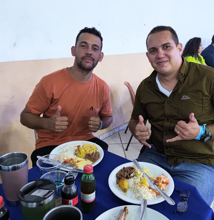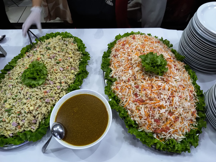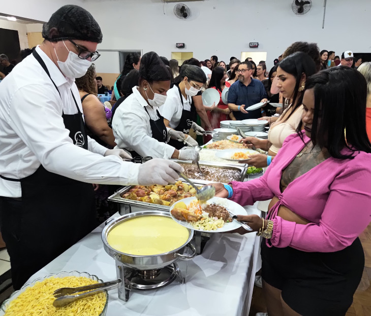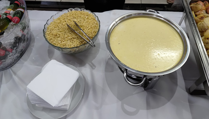 Clube Saci, e no menu, os funcionários se serviram de: saladas, arroz, creme de