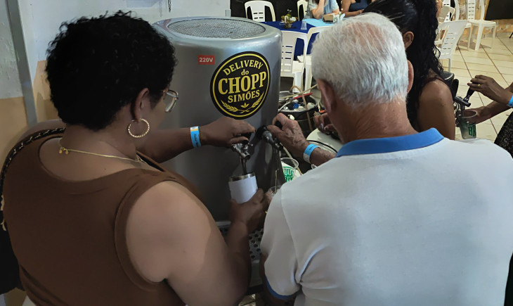 refrigerante, chopp, e, no final, os convidados saborearam mousse de morango de