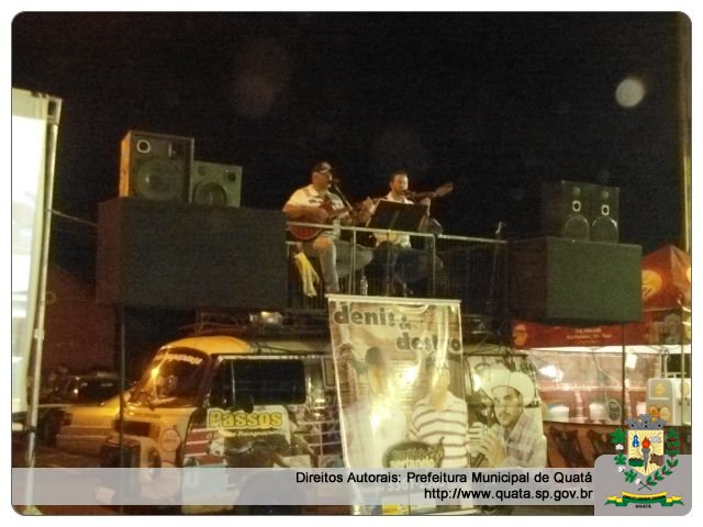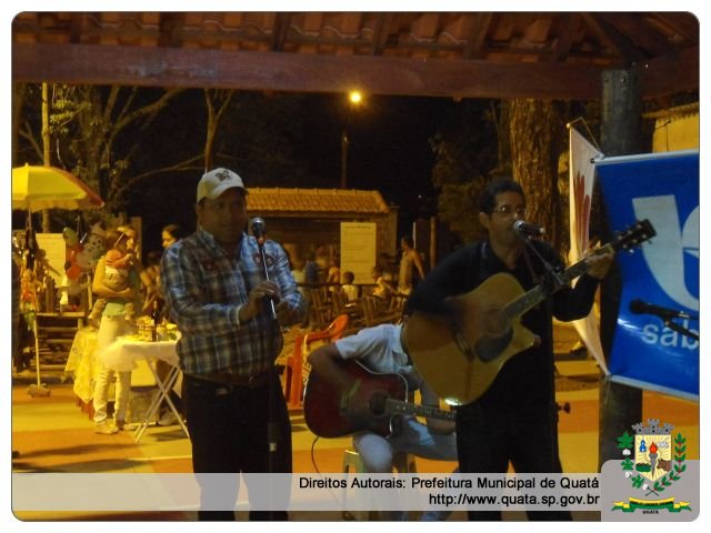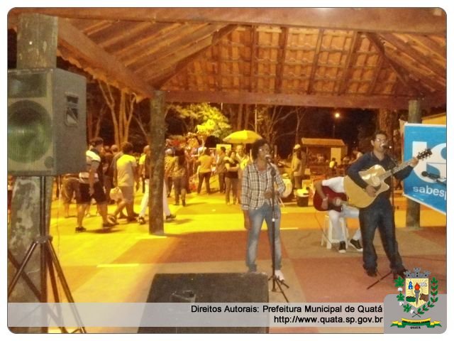 A “Feira da Lua” esta recebendo sempre às quintas-feiras uma atração diferente: no dia 31/10 quem fez sua apresentação foi a dupla sertaneja de Paraguaçu Paulista Denis e Destro; no dia 07/11 foi a vez dos cantores Amarildo, Anderson e Juninho e sua esposa. Na quinta-feira, dia 21/11, teremos a apresentação acústica de Val e Sirlene. Eventos organizados pela Secretaria de Cultura e Prefeitura Municipal; apoio da Câmara e das Secretarias de Infraestrutura e Planejamento.