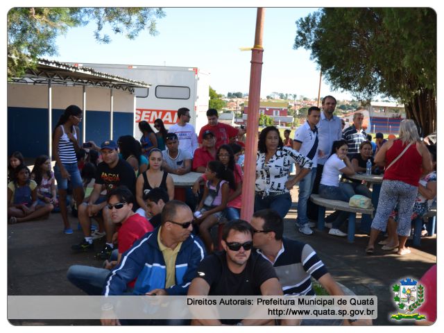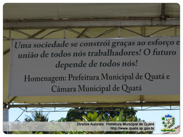 A Prefeitura Municipal de Quatá realizou no Ginásio de Esportes e Estádio a Festa em especial aos trabalhadores e seus familiares. Centenas de pessoas prestigiaram o evento que contou com várias atividades: Truco, Futebol, Vôlei de Areia, Recreações, Bocha, e as crianças se divertiram durante todo o dia nos brinquedos infláveis, piscina de bolinhas e cama elástica. Foram distribuídos pipocas e refrigerantes.