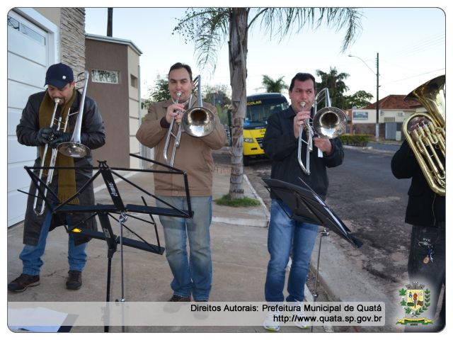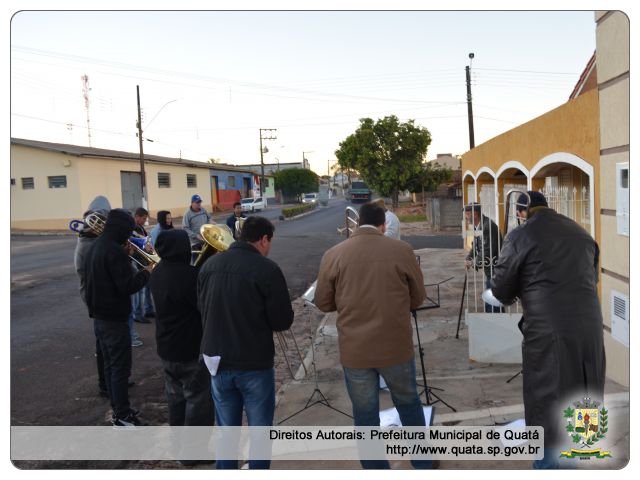 Divanil Roncada, José Paulo Guimarães, Dráuzio Ferreira, Dr. José Benquique e Marlene Guimarães foram algumas das pessoas escolhidas para receber, por alguns minutos, na aurora do dia, a Banda Municipal tocando duas ou três peças - sob regência total do ilustre Maestro Gilson (no passado, o evento era também organizado por ele).