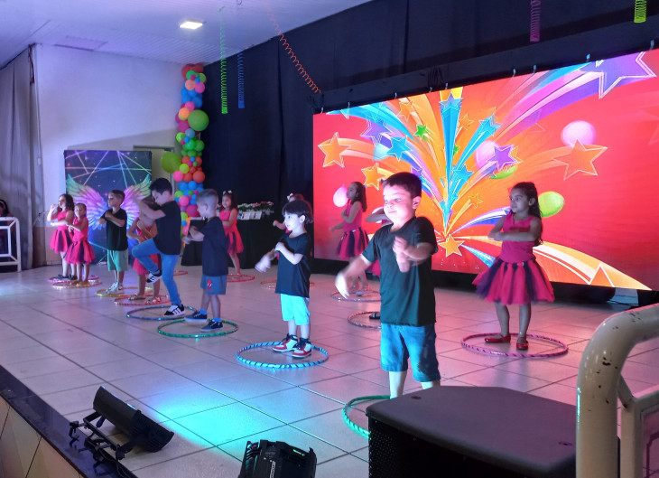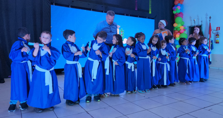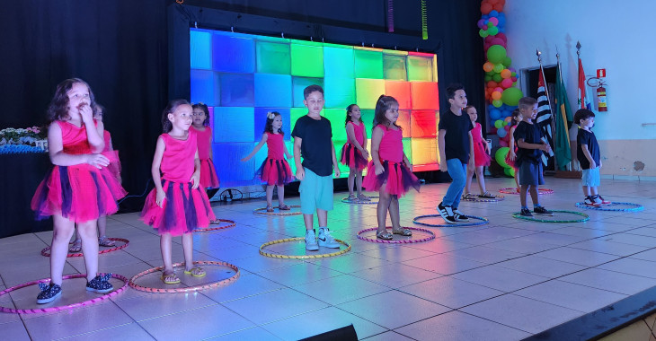 Os alunos do Pré 1 integral fizeram uma apresentação animada desenvolvida em projetos extra curriculares com a participação de toda equipe escolar e homenagearam os formandos, professores e funcionários da Escola.