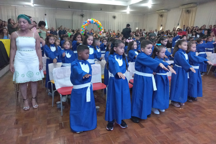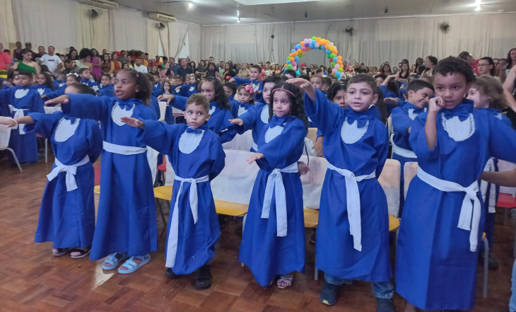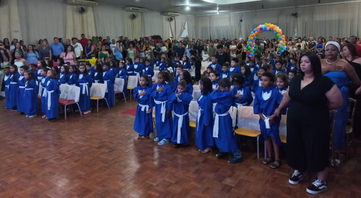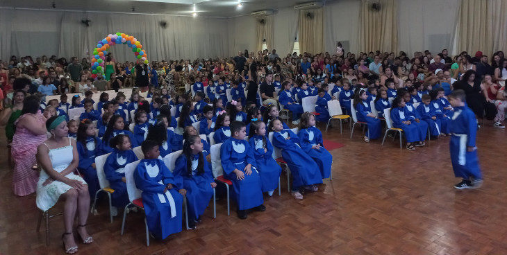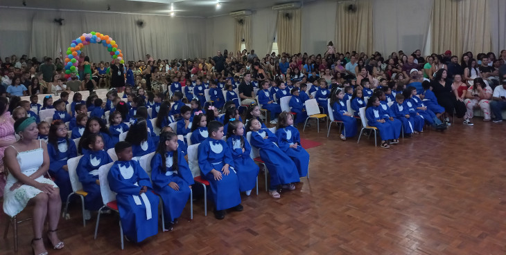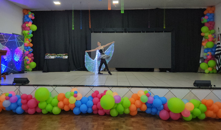 A colação contou também com a belíssima apresentação de balé com a bailarina Nicole Ferceli Casaca, entrega de mimos, e os alunos passaram pelo momento de colação de grau, finalizando o evento com uma linda apresentação.