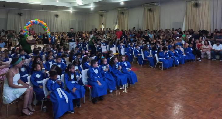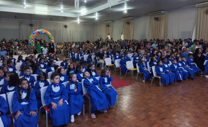 Em noite de comemoração e despedida, a Secretaria de Educação de Quatá realizou dia 11/12, no Clube Saci a Cerimônia de Formatura dos alunos de Educação Infantil do ano de 2024. A Formatura da Pré-Escola contou com a presença dos alunos do Pré 2 da EMEIEF LUIZ GAGLIARDI.