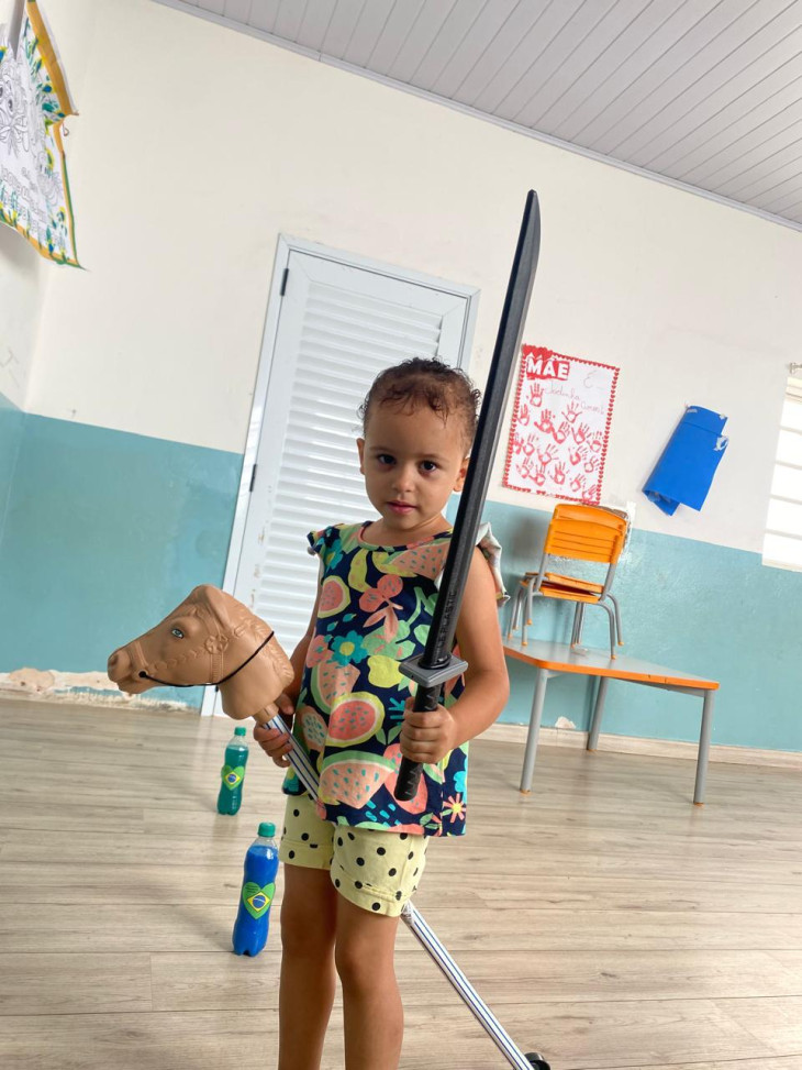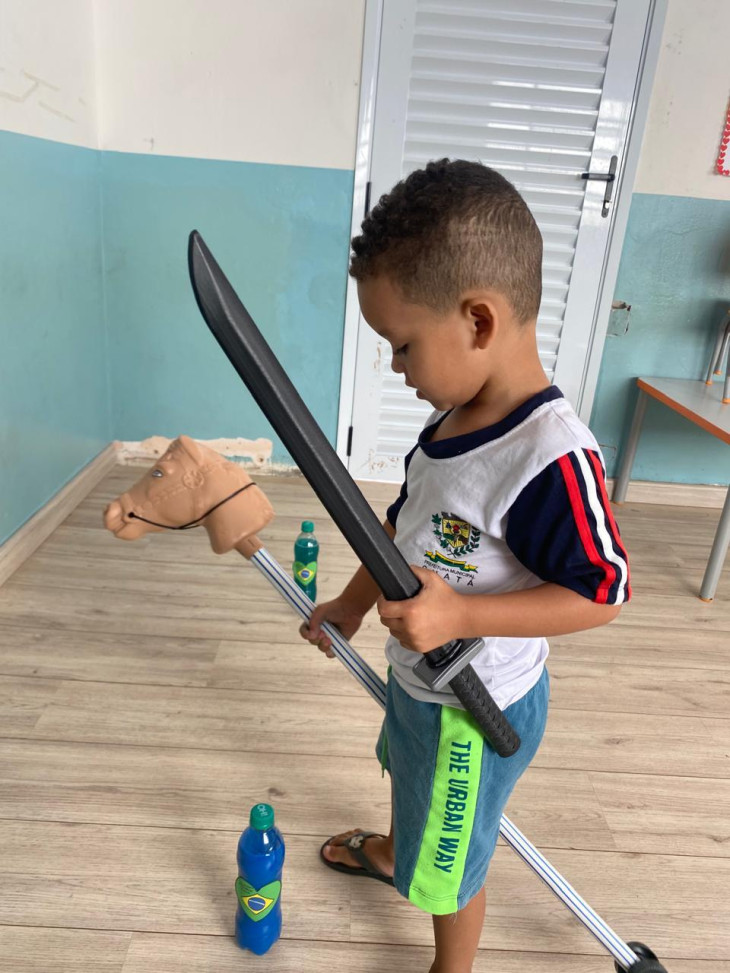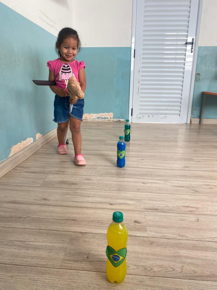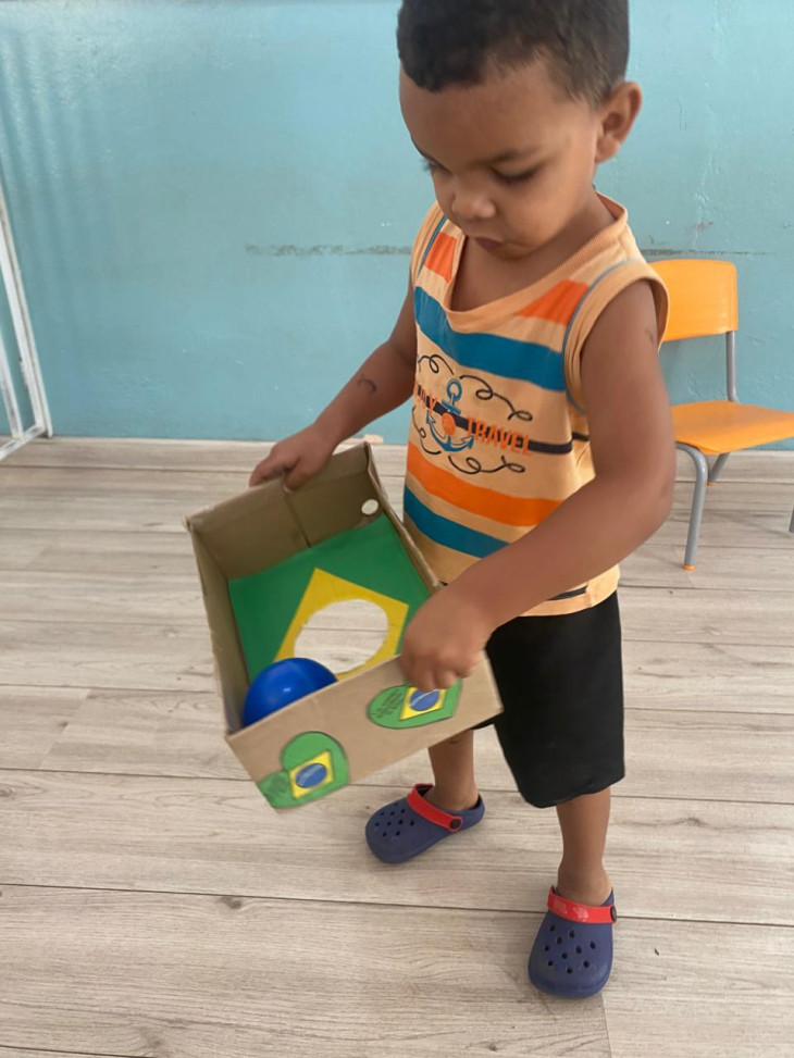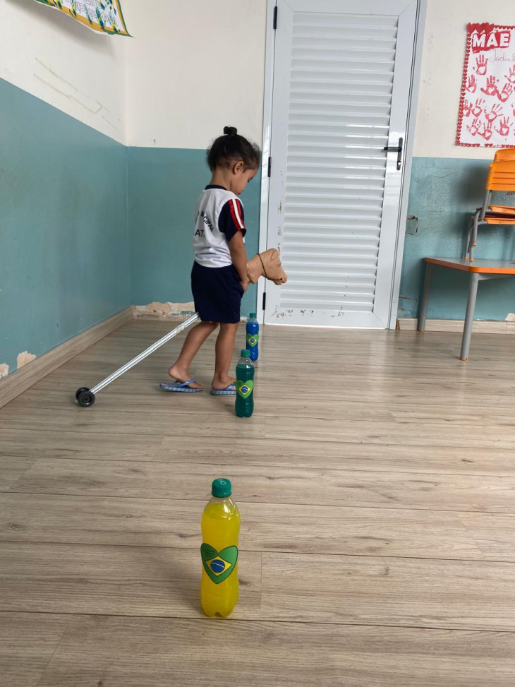 Além disso, a turma confeccionou um cartaz coletivo e pandeiros temáticos da Independência, vivenciando momentos de cooperação, socialização e respeito ao compartilhar materiais com os colegas (EI02EO03). As atividades também permitiram que as crianças se apropriassem de gestos e movimentos característicos da cultura brasileira, especialmente por meio das brincadeiras (EI02CG01).