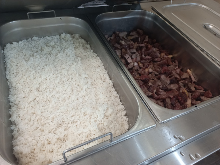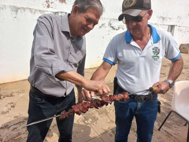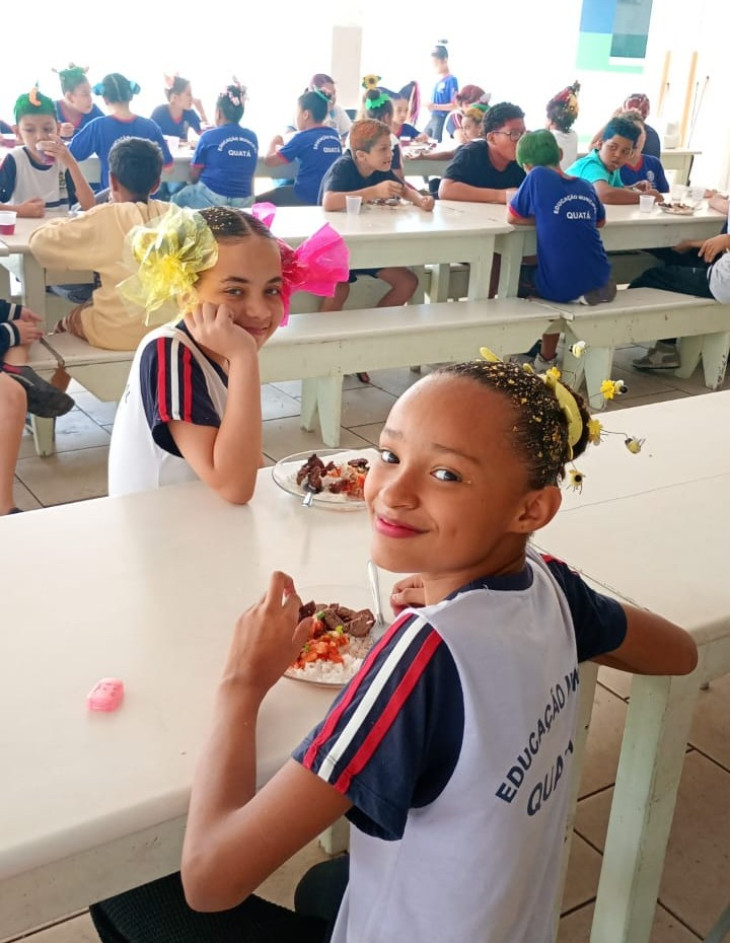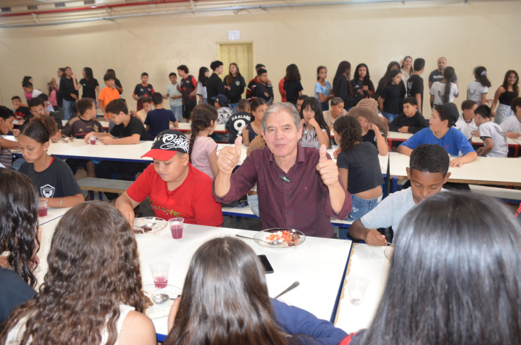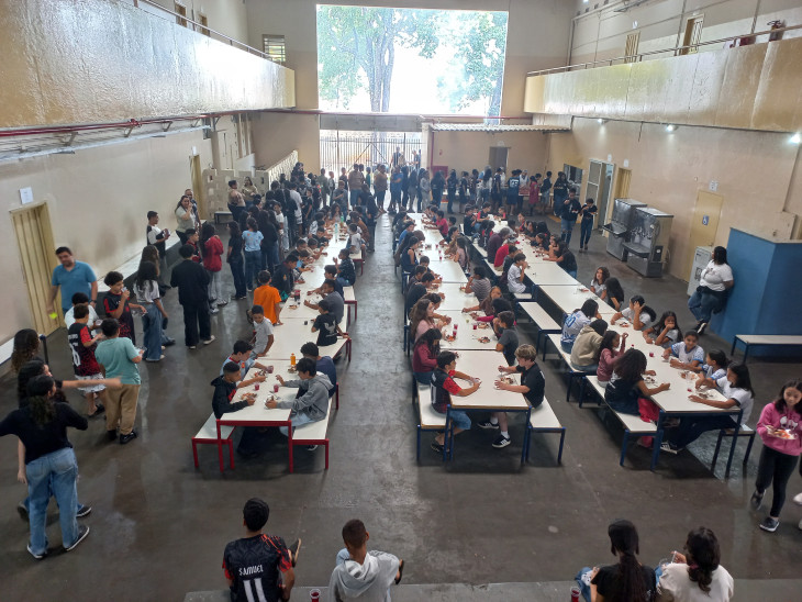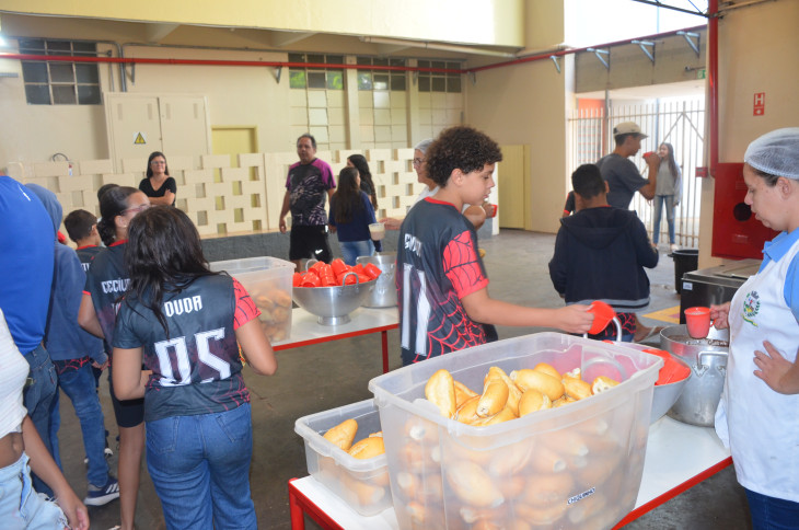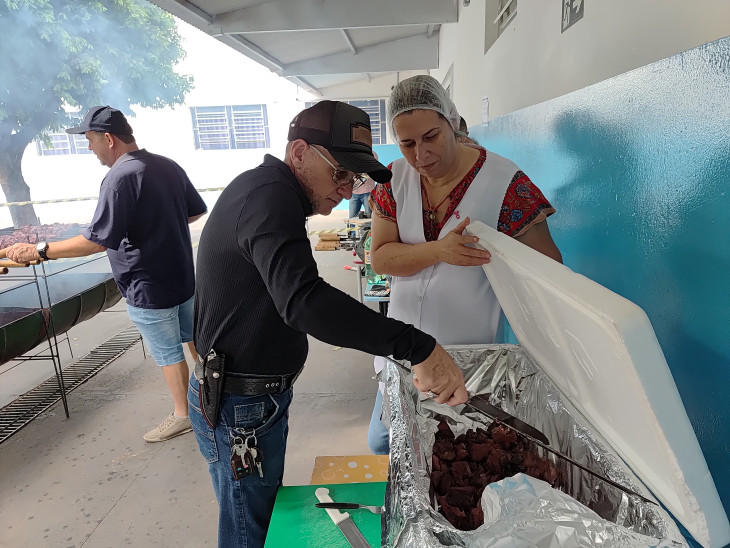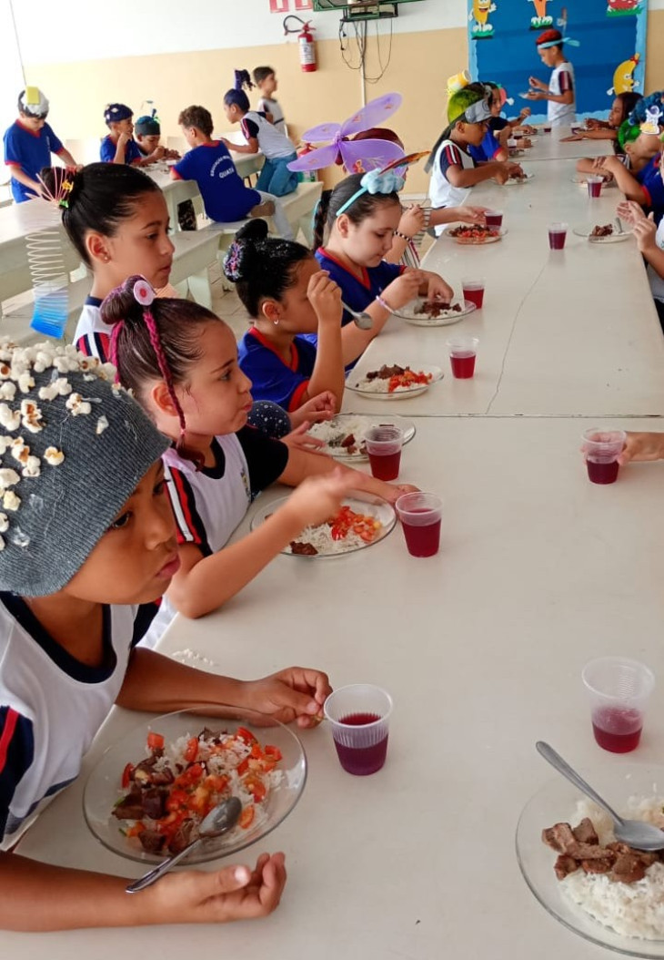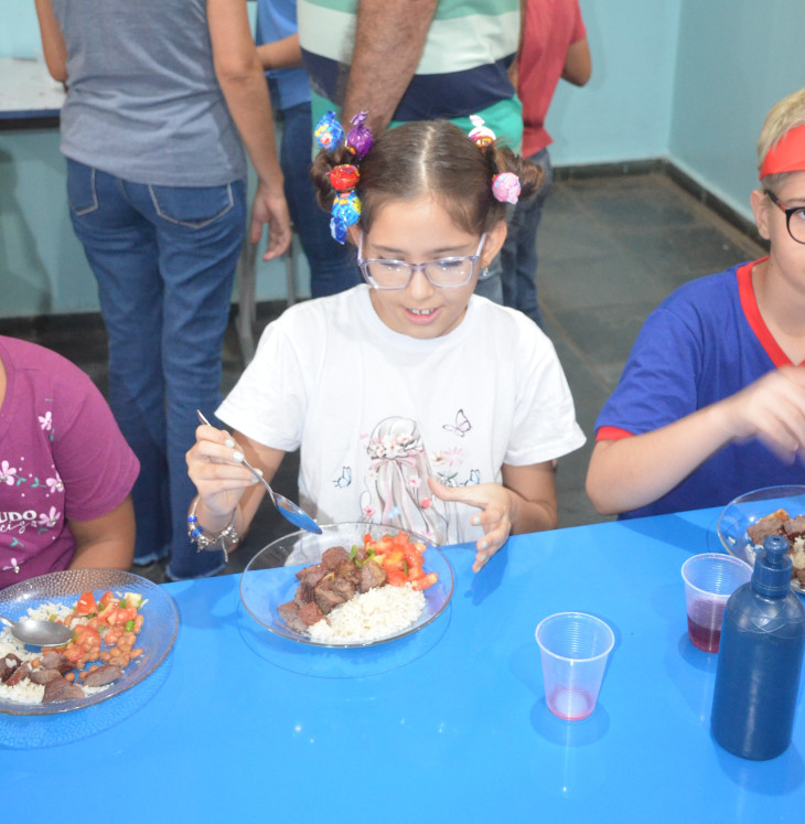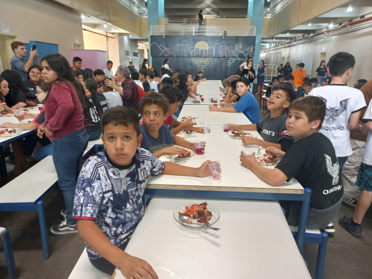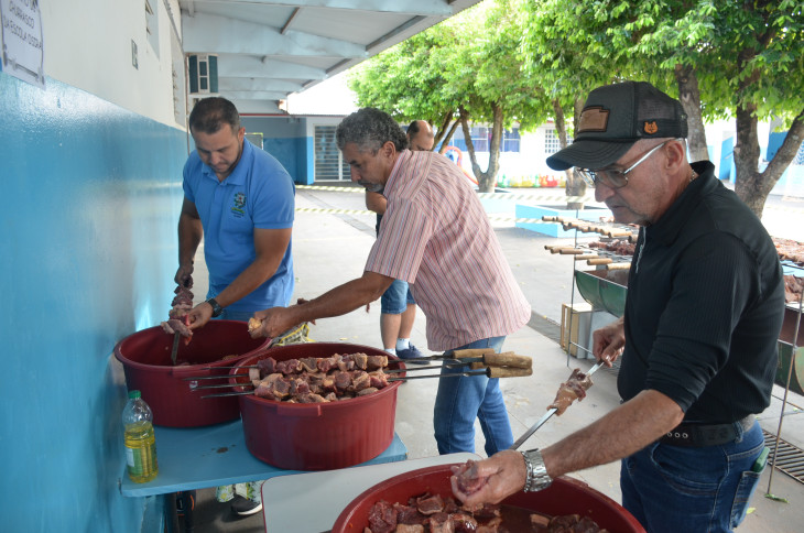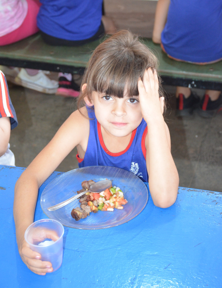 Mais de 2.500 alunos se beneficiaram do almoço, que teve como cardápio: cerca de 750 kg de carne de alcatra assada para churrasco, arroz, vinagrete, suco natural de uva e sorvete, além do almoço tradicional servido nas Escolas.