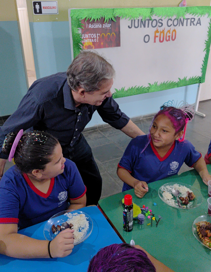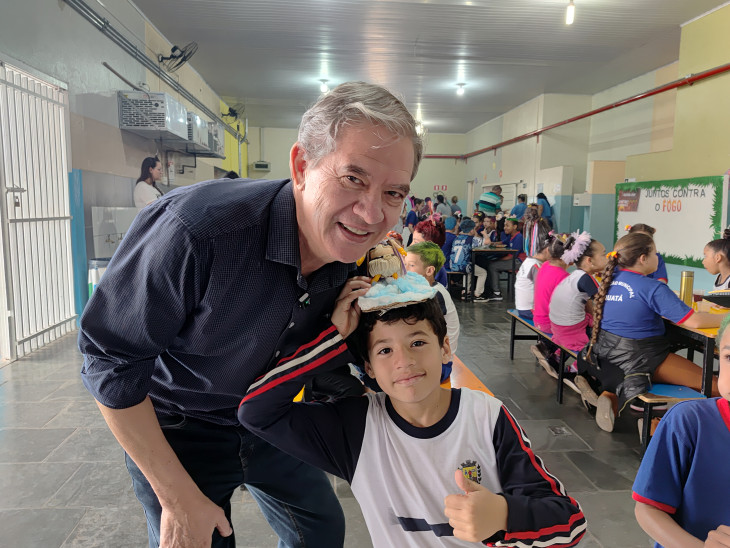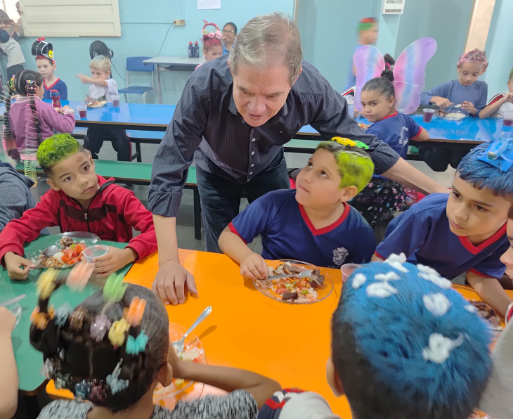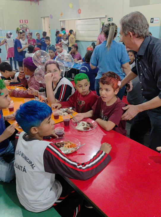 O Prefeito Marcio Bidoia e o Vice Elton Masi, acompanhados da Secretária de Educação Ângela Jerônymo, prestigiaram o churrasco e almoçaram com os alunos, desejando a todos um mês das crianças abençoado.