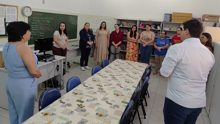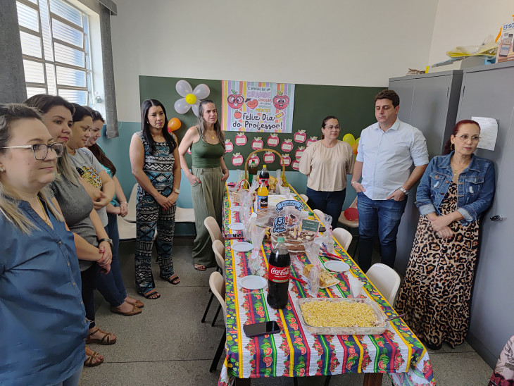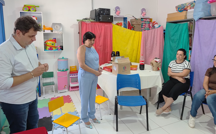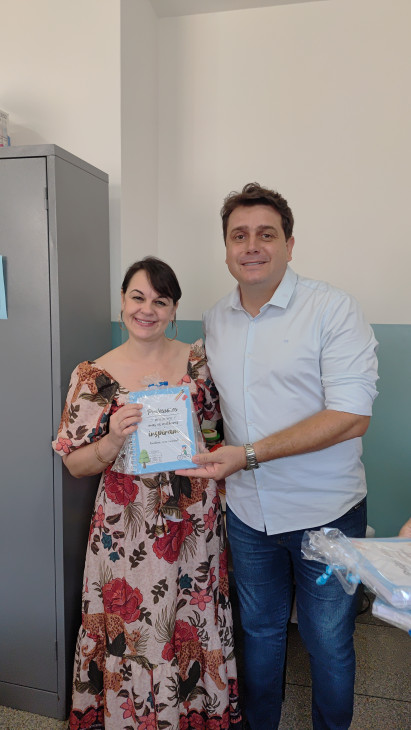 A entrega contou com a presença do Vice-Prefeito Elton Masi e da Secretária de Educação Ângela Jerônymo, que acompanharam o momento de celebração e agradecimento aos educadores.