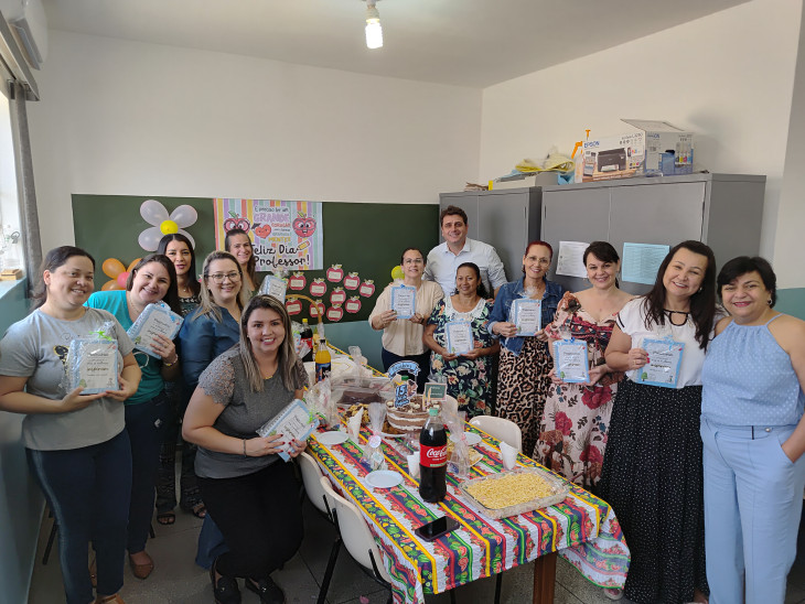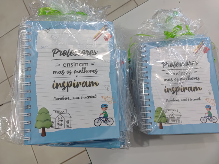 Em comemoração ao Dia do Professor, a Secretaria de Educação realizou a entrega de agendas personalizadas para todos os docentes das Escolas Municipais, como forma de homenagem, carinho e reconhecimento pelo trabalho realizado na formação das crianças e jovens do Município.