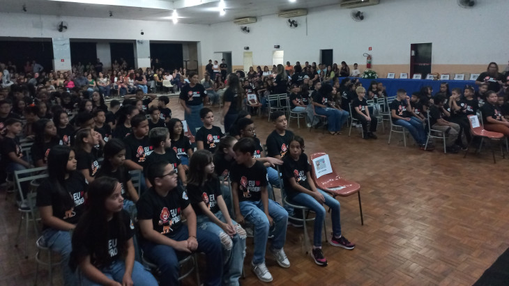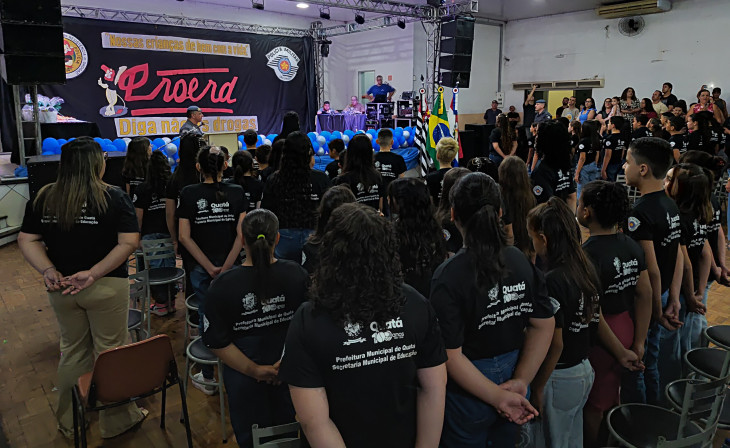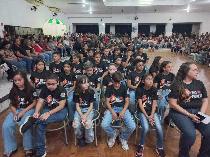 Alunos do 5º ano das Escolas Municipais: EMEIF Prof.ª Angela Maria Pellini Garcia - Gi e EMEIEF "Prof.ª Osira de Arruda Mendes, participaram no dia 30 de outubro de 2025, da formatura do PROERD, que ocorreu no Clube Saci de Quatá e contou com a presença de Policiais Militares e 143 alunos formandos.