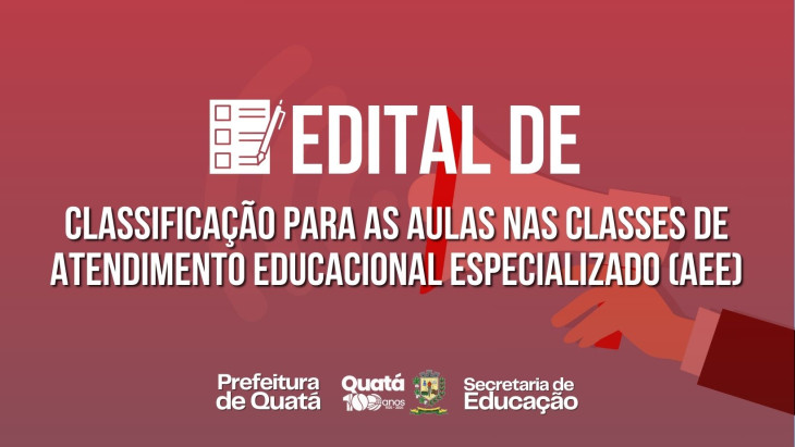 23/01/2026 13:29Edital de Classificação para as aulas nas classes de Atendimento Educacional Especializado (AEE).