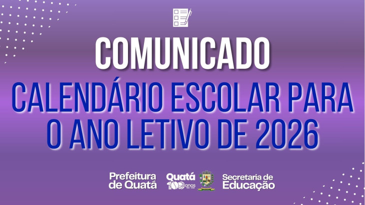 COMUNICADOCalendário Escolar para o Ano Letivo de 2026Link do Edital: https://drive.google.com/file/d/1S4l96DpP3hFgjCc3jmq3iOK4y18TqfD7/view?usp=sharing#quatarumo100anos