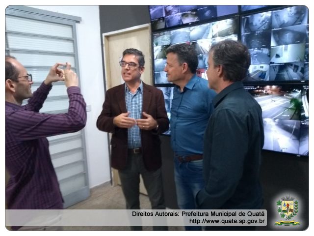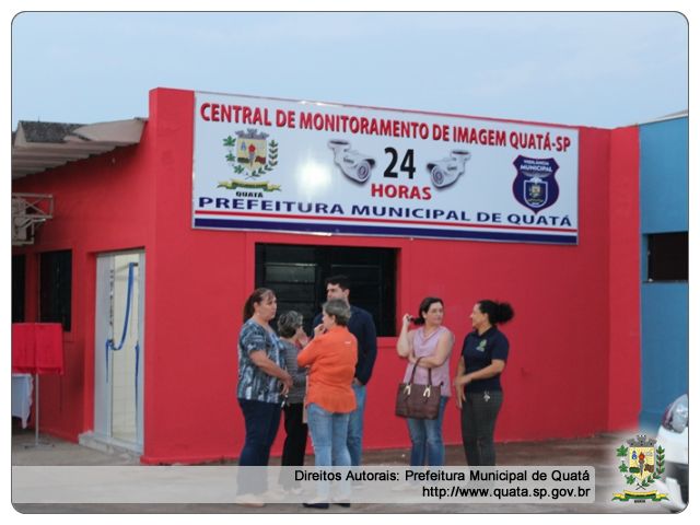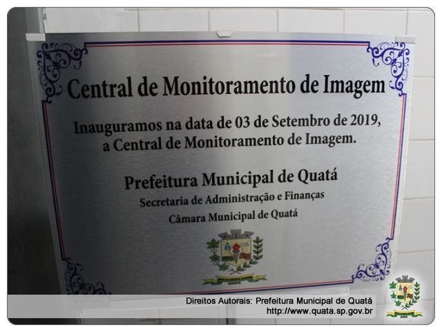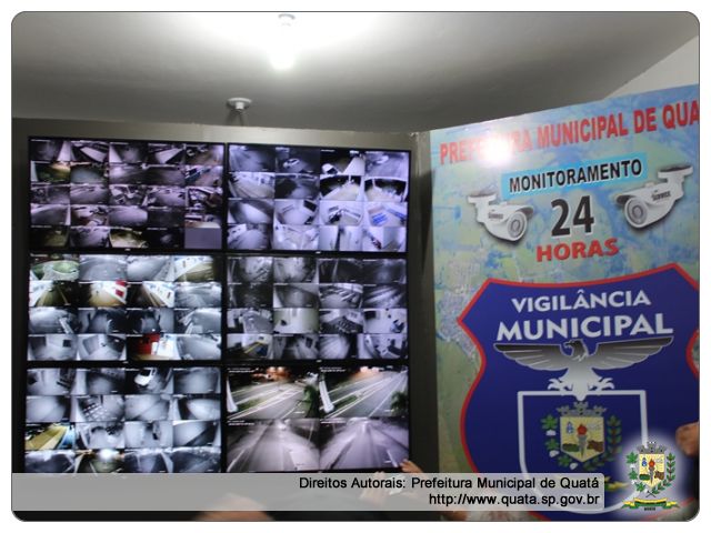 A Prefeitura Municipal de Quatá inaugurou dia 03/09/19 a Central de Monitoramento de Imagens. Ao todo, mais de 200 câmeras modernas, com perfeição de imagem para longo alcance, foram instaladas nos prédios e espaços públicos, assim como principais pontos do Município que serão fiscalizados 24h, todos os dias da semana. Um grandioso investimento de R$ 600 mil reais. Os 20 Funcionários envolvidos com este trabalho passaram por treinamento em Ourinhos e estão apitos para atenderam as demandas, junto com a Polícia Militar e Civil. Além de Câmeras, o Município conta com viatura para patrulhar toda a cidade.