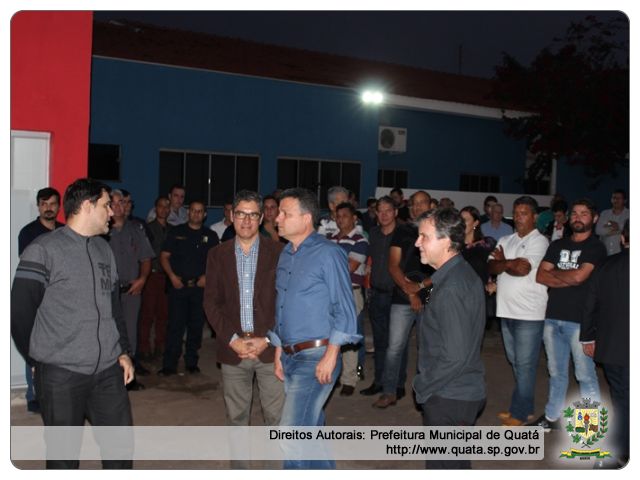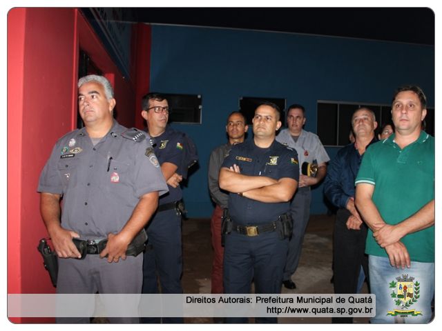Além dos Prefeitos convidados, a inauguração contou ainda com a presença de Vereadores de outras Cidades; Comandantes da Polícia Militar e Civil; do representando do Prefeito de Ourinhos e Secretário Segurança Coronel Wagner, do Capitão André da região de Quatá; do vice Márcio Bidóia; presidente da Câmara Elton Masi; Secretários e Funcionários municipais, e moradores de Quatá. Agradecimentos a todos que compareceram.
