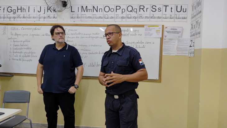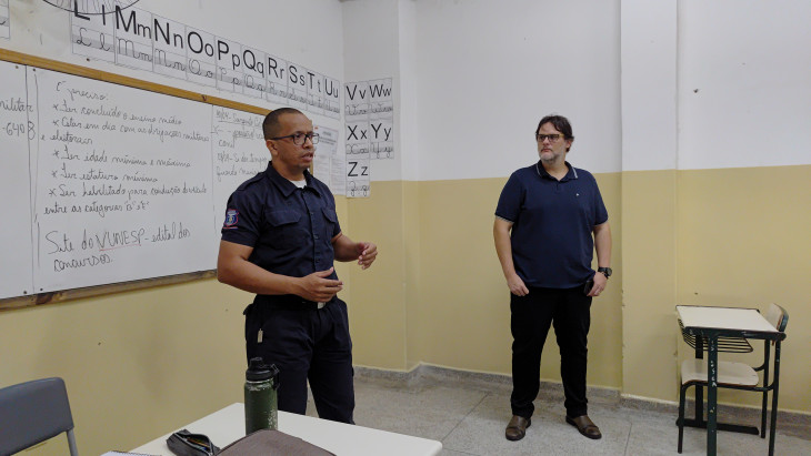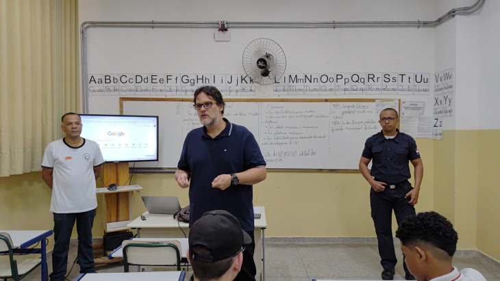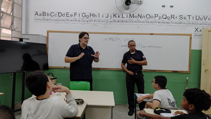 Os alunos também receberam orientações sobre quando acionar a Guarda Municipal, a Polícia Militar ou o Corpo de Bombeiros, e puderam tirar dúvidas ao final do encontro. A ação teve como objetivo levar informação e orientação aos estudantes, fortalecendo o vínculo entre a comunidade escolar e os serviços públicos de segurança.