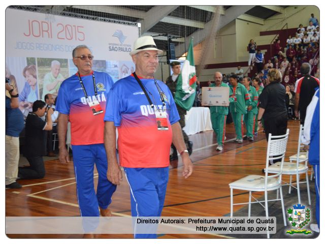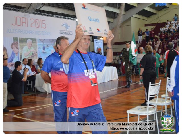Quatá marcou presença com as equipes de Bocha e Truco. A prefeita Luciana Guimarães Alves Casaca prestigiou a participação dos atletas quataenses, ao lado da presidente do Fundo Social de Solidariedade Daniela Roberta Pellini Pecchio e do secretário de Esporte Roberto Sérgio Nogueira. "É comum as pessoas chegarem aos 60 anos e se acomodarem, perdendo o interesse em exercer alguma atividade. Por isso que eu apoio e incentivo a participação dos nossos idosos, pois o JORI faz com que a pessoa da terceira idade se levante e tenha uma vida mais ativa", comenta a prefeita Luciana.