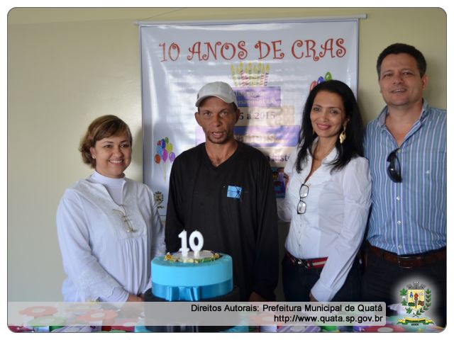 O CRAS – Centro de Referência da Assistência Social celebra 10 anos de existência em Quatá e, para comemorar essa data, a Secretaria de Promoção Social realizou na manhã de 28 de agosto uma festa de Aniversário do CRAS.