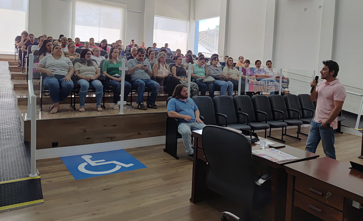 27/02/2026 16:35Em alusão à Campanha do Fevereiro Roxo e Laranja, a Prefeitura de Quatá, promoveu por meio da Secretaria de Saúde, uma palestra para Profissionais da Rede e Funcionários Municipais. A ação ocorreu dia 27/02, na Câmara Municipal e teve objetivo orientar e reforçar a importância do cuidado com Alzheimer e Fibromialgia.