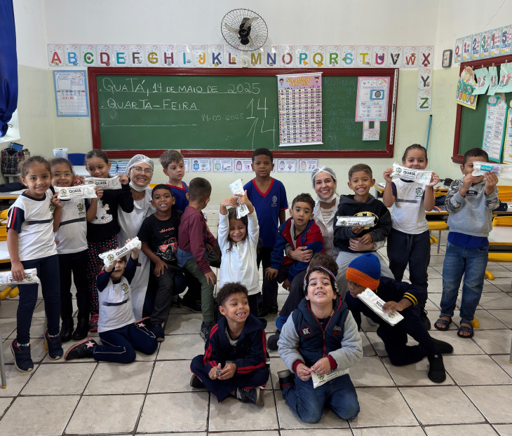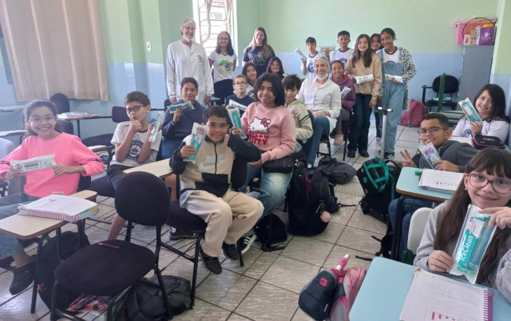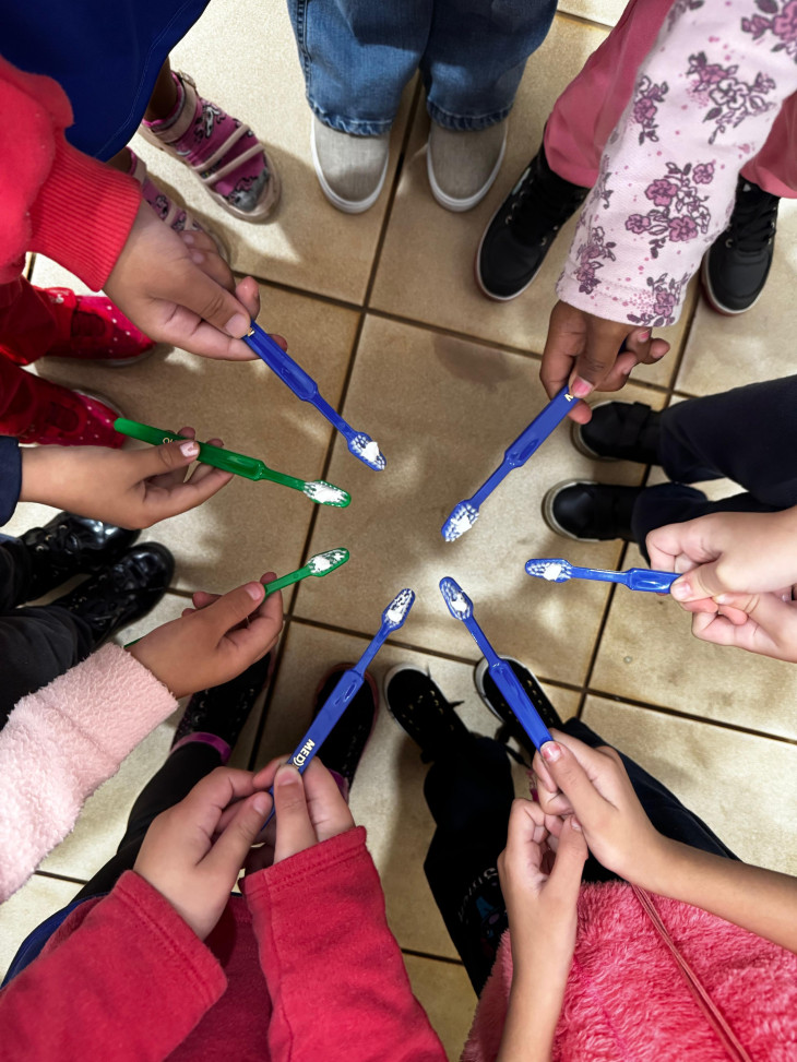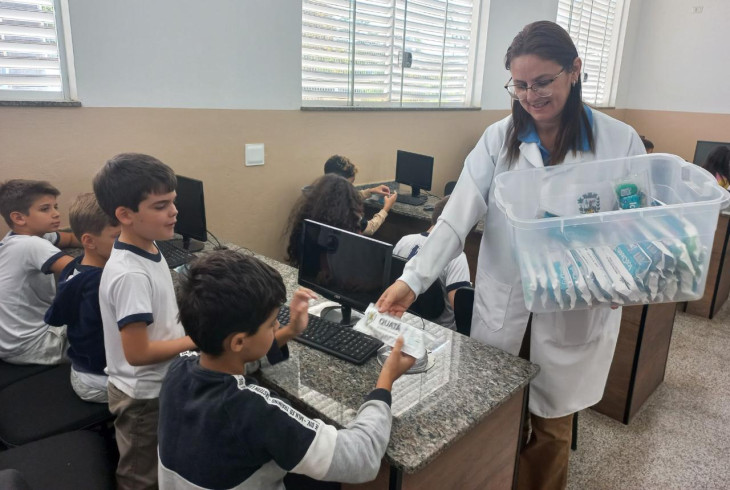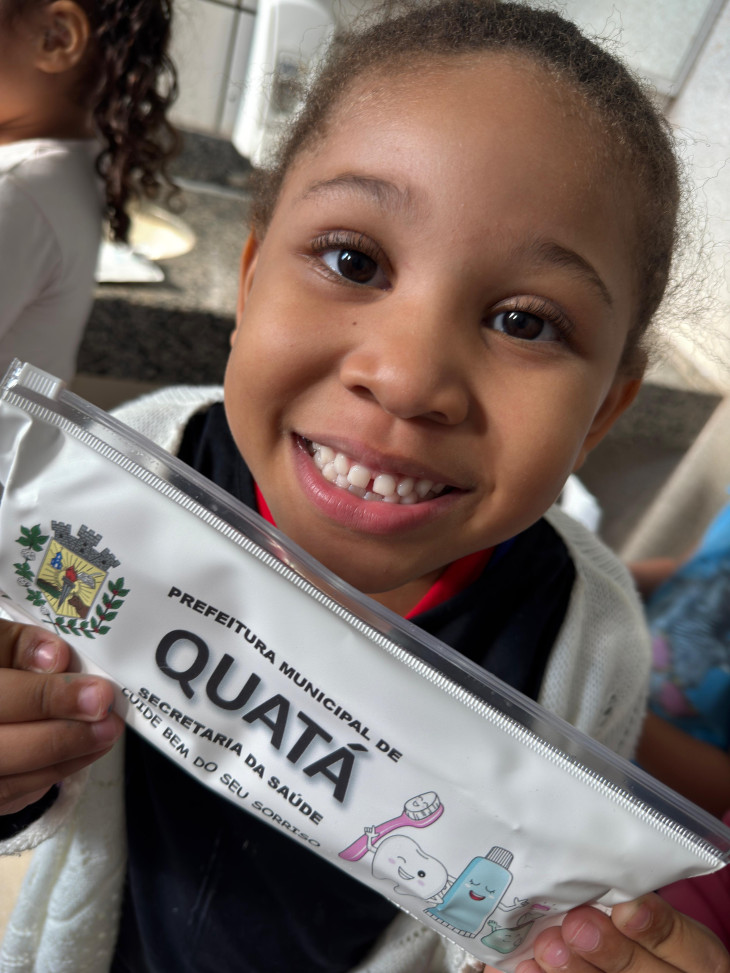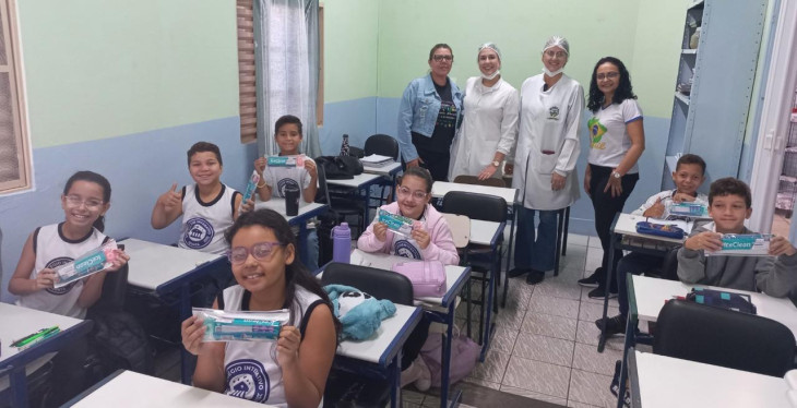 Como complemento às ações educativas, os alunos recebem kits contendo escova de dente, pasta de dente e fio dental, incentivando a prática diária da escovação e do uso do fio dental, fortalecendo assim a prevenção de cáries, gengivites e outras doenças bucais.
