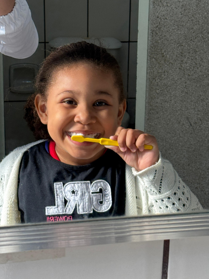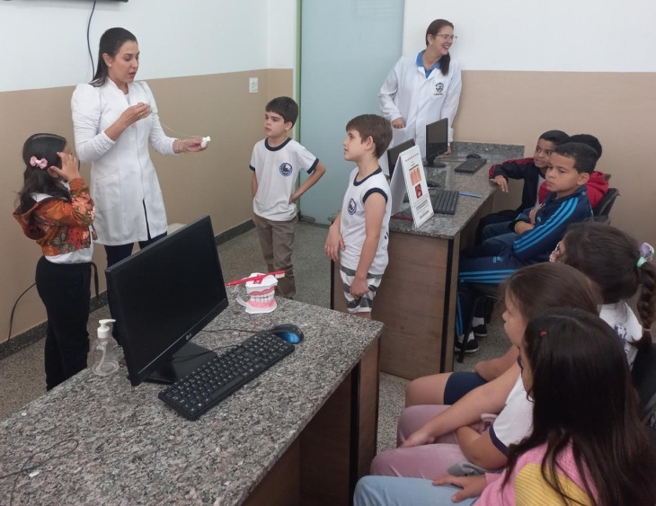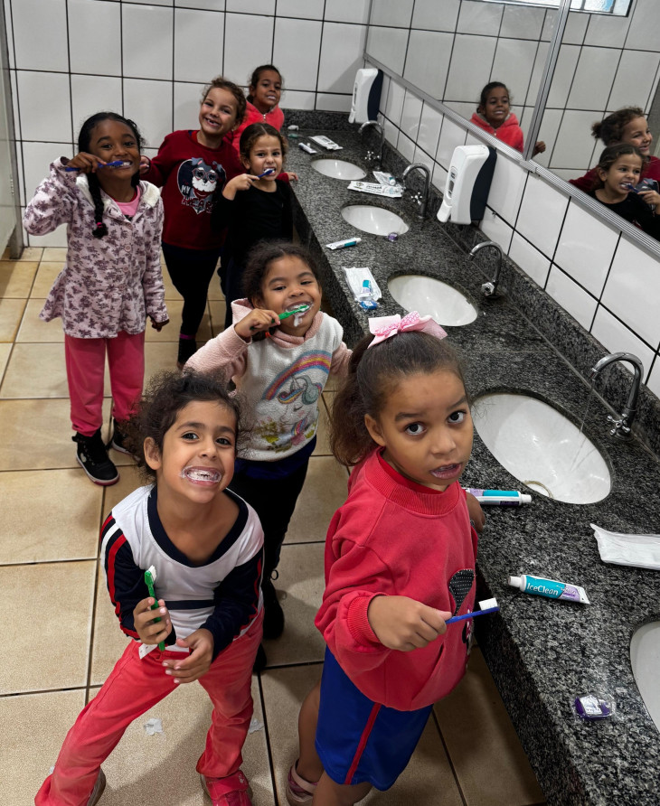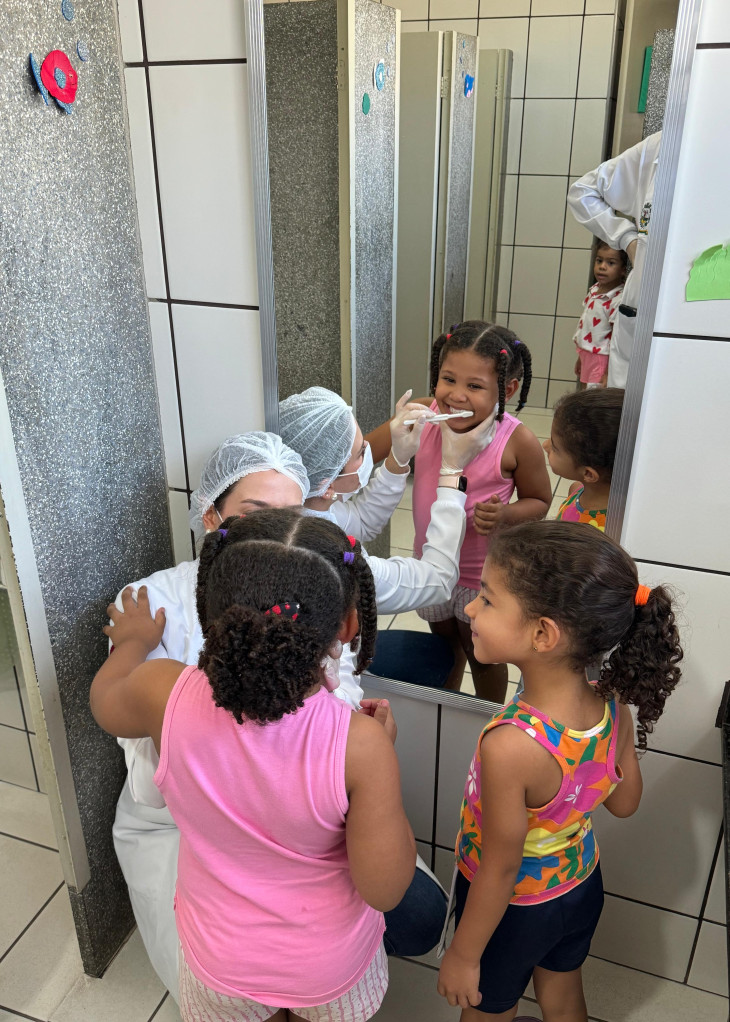 As ações desenvolvidas incluem palestras informativas, orientações sobre higiene oral e alimentação saudável, demonstração prática de técnicas corretas de escovação e escovação dental supervisionada. Essas ações são para assegurar que as crianças aprendam a cuidar adequadamente dos dentes e gengivas, prevenindo a cárie, lém de orientações sobre hábitos nocivos que causam impactos negativos sobre a saúde bucal e geral.