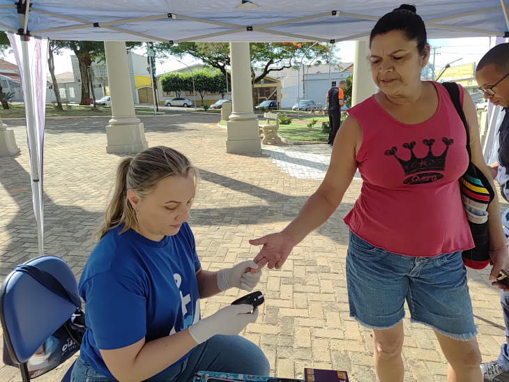Os profissionais da ação explicaram ainda sobre o diabetes e a forma como ele afeta o metabolismo do açúcar no corpo, e pontuou fatores de risco hereditários e externos, formas de tratamento e complicações de saúde. Enfatizaram o papel da alimentação para a prevenção e o controle da doença, orientando os usuários para evitar o excesso de carboidratos e adotar uma dieta mais equilibrada no dia a dia.